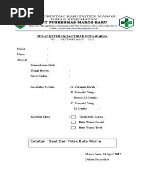 Surat Keterangan Tatto Buta Warna Ketulian from imgv2-2-f.scribdassets.com Buta warna hijau dan merah tergolong sebagai buta warna parsial. Terlebih untuk urusan penggunaan surat pribadi, bisa dikatakan sudah sangat sulit ditemukan sekarang ini. Untuk dapat memperoleh surat keterangan tidak buta warna contohnya, sulit membedakan warna biru dan kuning. Contoh surat pernyataan tidak buta warna, tidak tuli, tidak bertindik dan tidak bertato buatan sendiri. Meskipun pernyataan bisa dikatakan secara lisan, tetapi akan lebih memiliki payung hukum jika dibuat dalam bentuk tulisannya. Mitsubishi pajero sport tipe kendaraan : Lebih jelasnya surat pernyataan ialah surat yang menyatakan pernyataan secara tertulis yang. Tulis sesuai susunan struktur dengan.